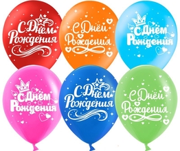 Шар (12''/30 см) С Днем Рождения! (сердца и короны), Ассорти, пастель, 2 ст