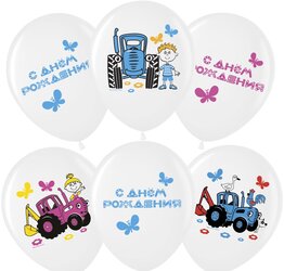 Шар (12''/30 см) Синий трактор, Белый, пастель, 1 ст,