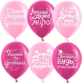 Шар (12''/30 см) Дочка, С Днем Рождения!, Ассорти для девочки, пастель, 2 ст