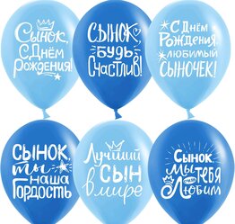 Шар (12''/30 см) Сынок, С Днем Рождения!, Ассорти для мальчика, пастель, 2 ст