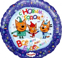 Фольгированный шар (18''/46 см) Круг, С Новым годом, Три кота,