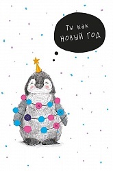 Открытка, Ты как Новый Год (пингвин с гирляндой), 10*15 см, 1 шт.