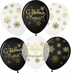 Воздушный шар (12''/30 см) С Новым Годом! (Золотые снежинки