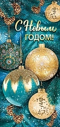Открытка, С Новым Годом! (елочные игрушки), Бирюзовый, 12*18 см,1 шт.