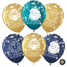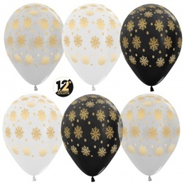 Шар (12''/30 см) Снежинки, Ассорти Хром, пастель, 5 ст