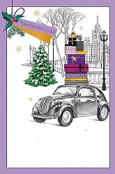 Открытка, Чудесного Года (автомобиль с подарками), 10*15 см, 1 шт