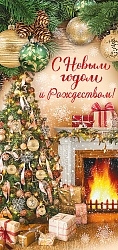 Открытка, С Новым Годом! (елка у камина), 12*18 см, 1 шт.