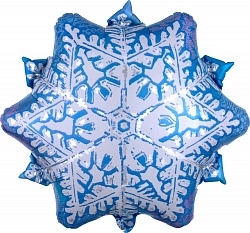 Шар (20''/51 см) Фигура, Снежинка, Голубой/Серебро