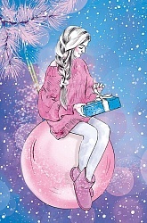 Открытка, Девушка на елочном шаре, 10*15 см, 1 шт.