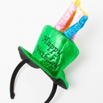 Ободок Шляпка, со свечами, С Днем Рождения, Зеленый, блестящий