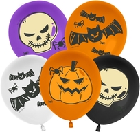 Шар (12''/30 см) Хэллоуин, Страшилки, Ассорти, пастель, 2 ст, 25 шт.